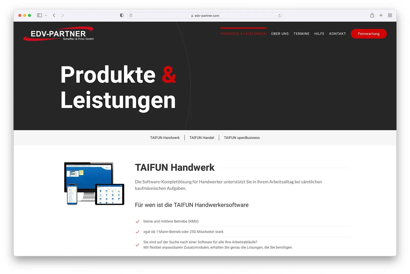 Angefangen bei Einzelunternehmern, Handwerks- und Familienunternehmen über Handelsgesellschaften oder kleinen Produzenten bis hin zu Großherstellern und Lieferanten - wir beraten Sie in sämtlichen Belangen Ihrer Website.